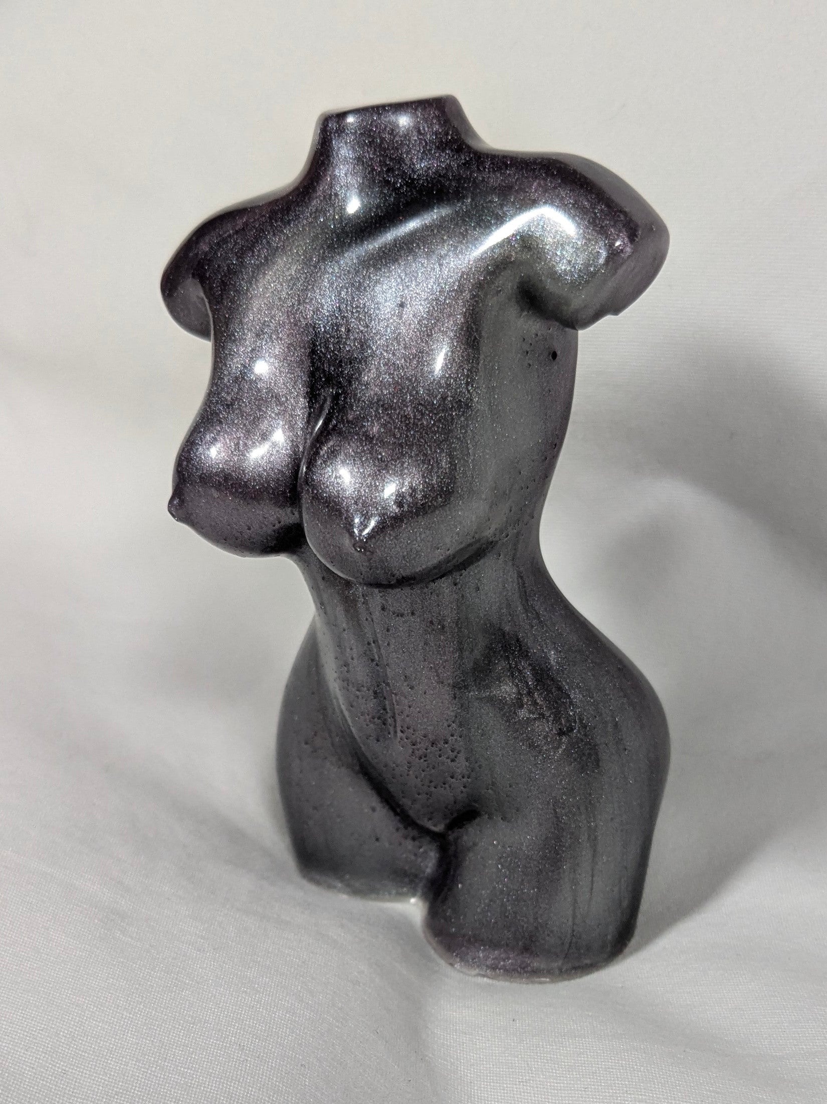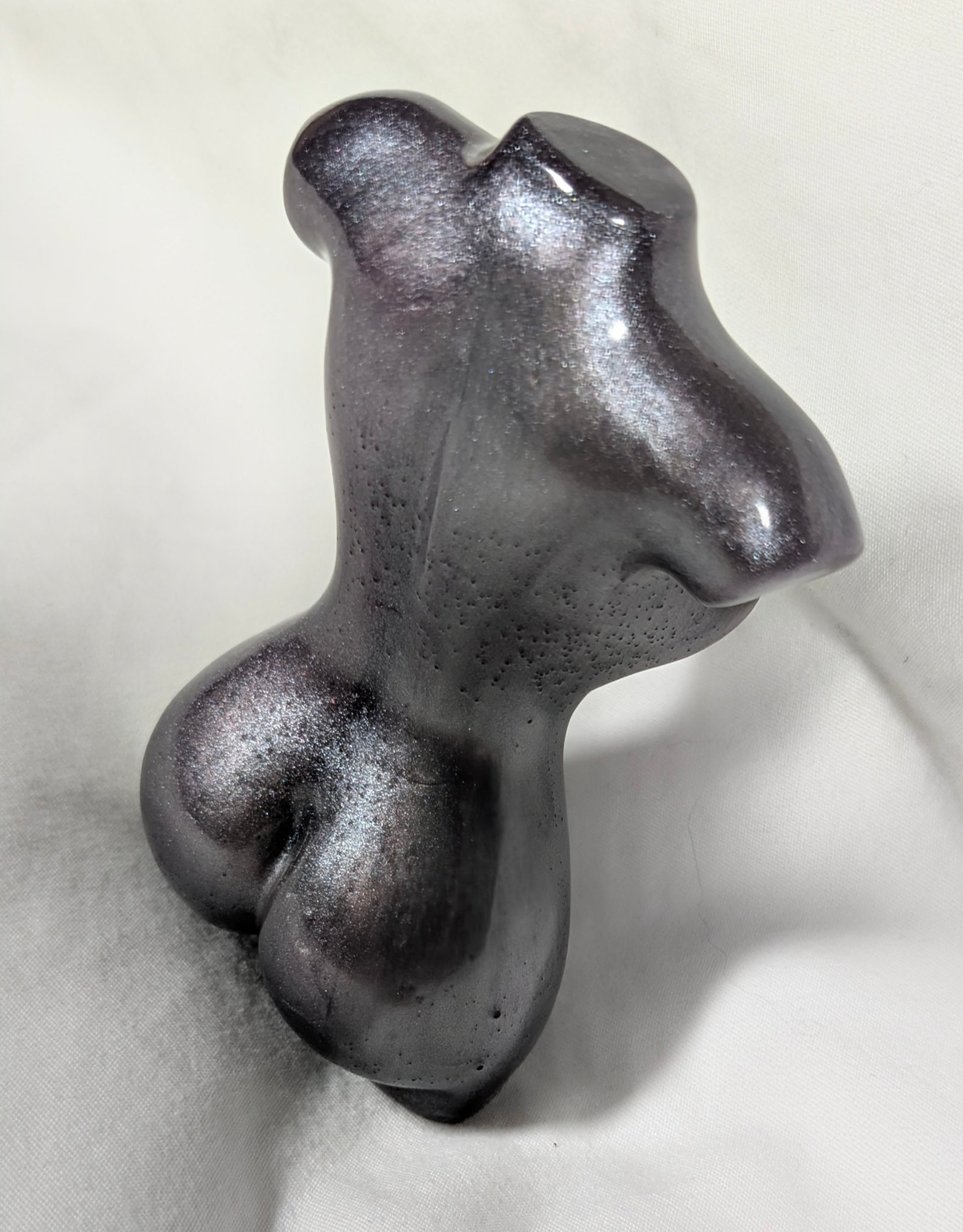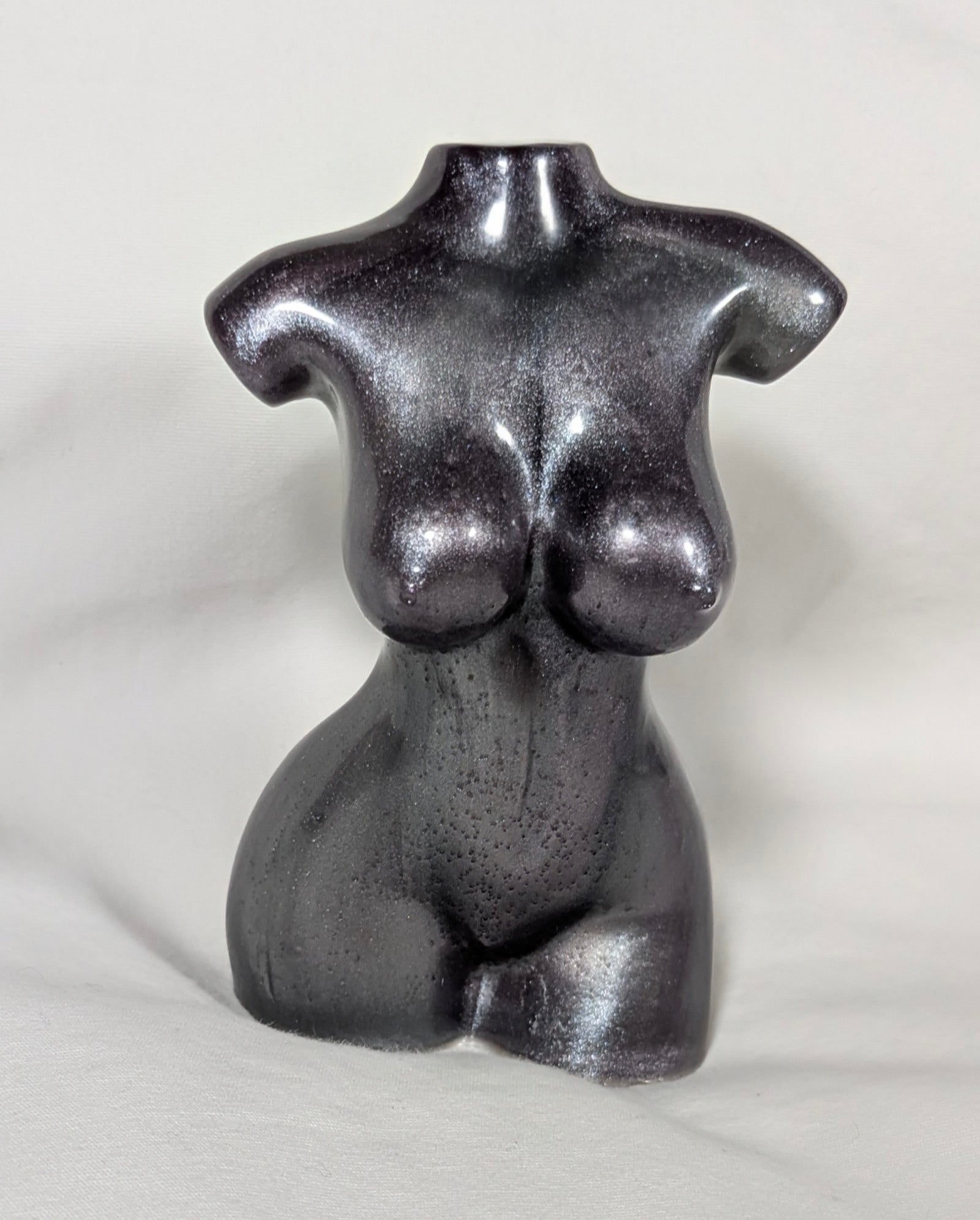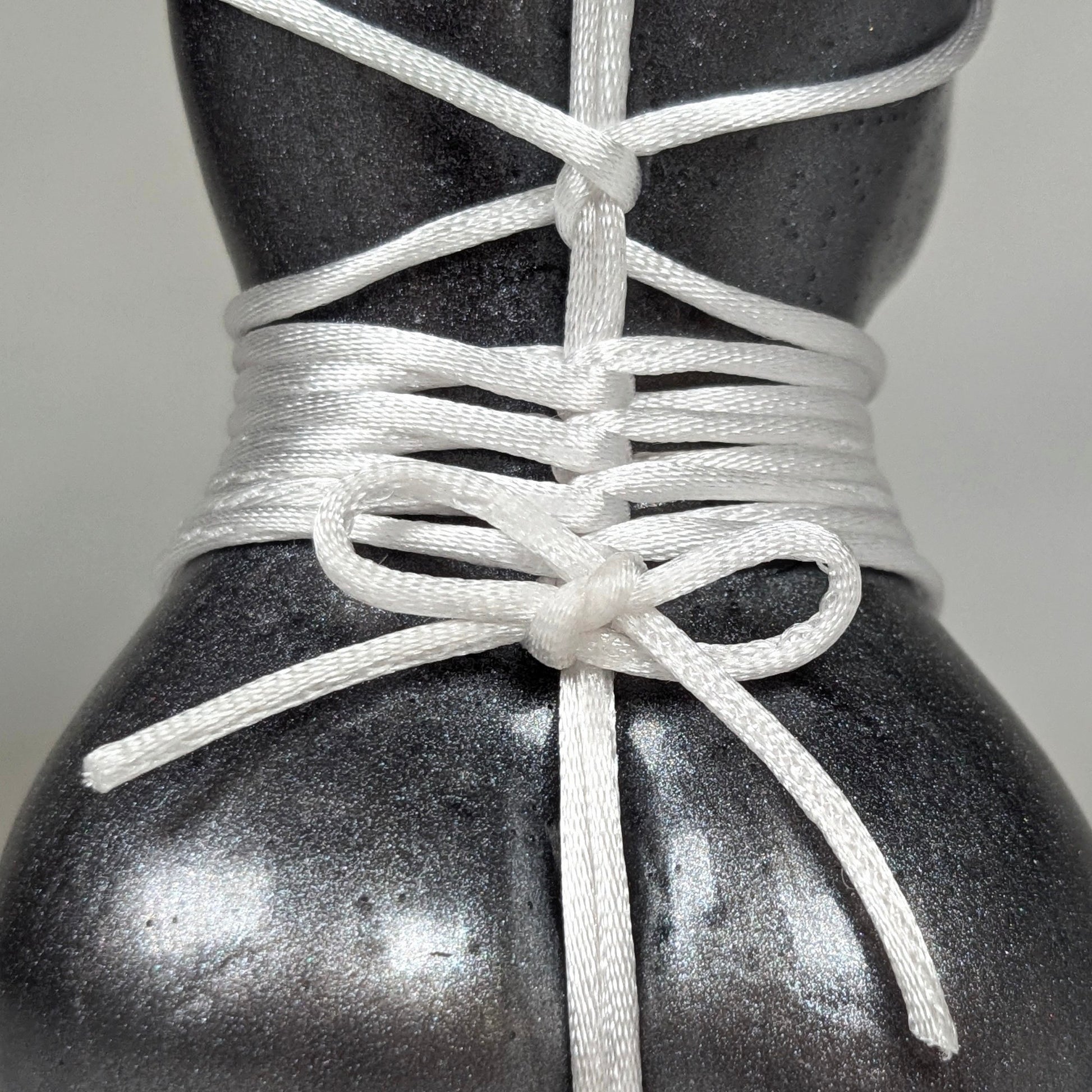 You can have your figurine tied in a decorative rope harness, or without rope to come as a nude, unbound torso. If you would like a bound figurine, there are currently 13 rope color options, and the ties now come with my signature decorative rope ring collars. If you do NOT want it to come tied with the rope collar, check the box.